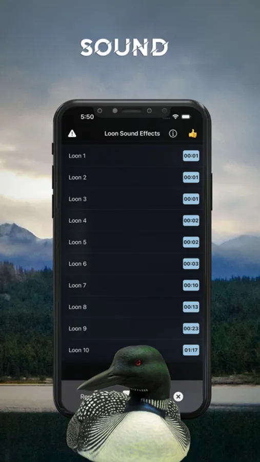 Here are some of the sounds included in the Loon Sounds & Loon Sound Effects App
