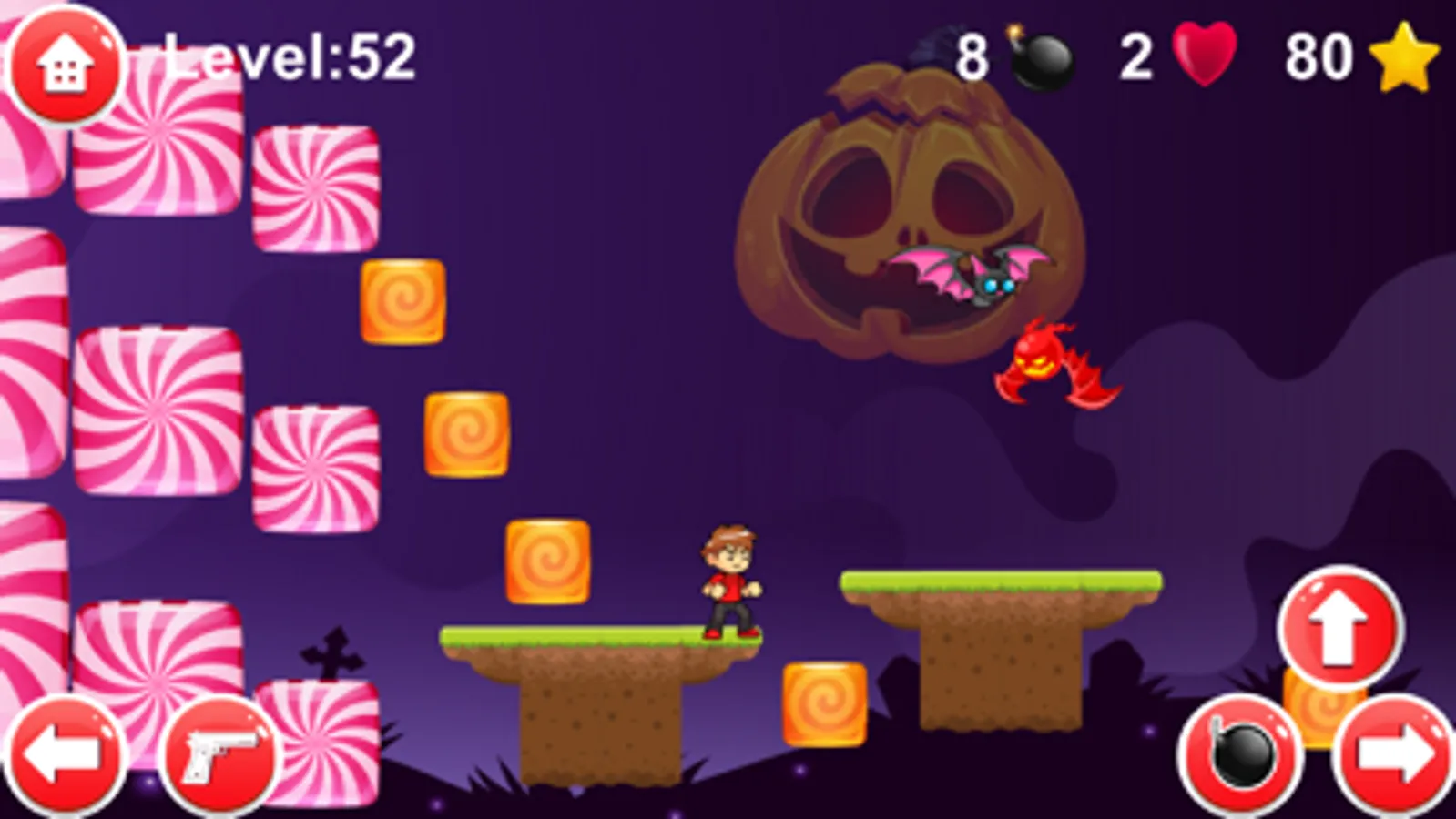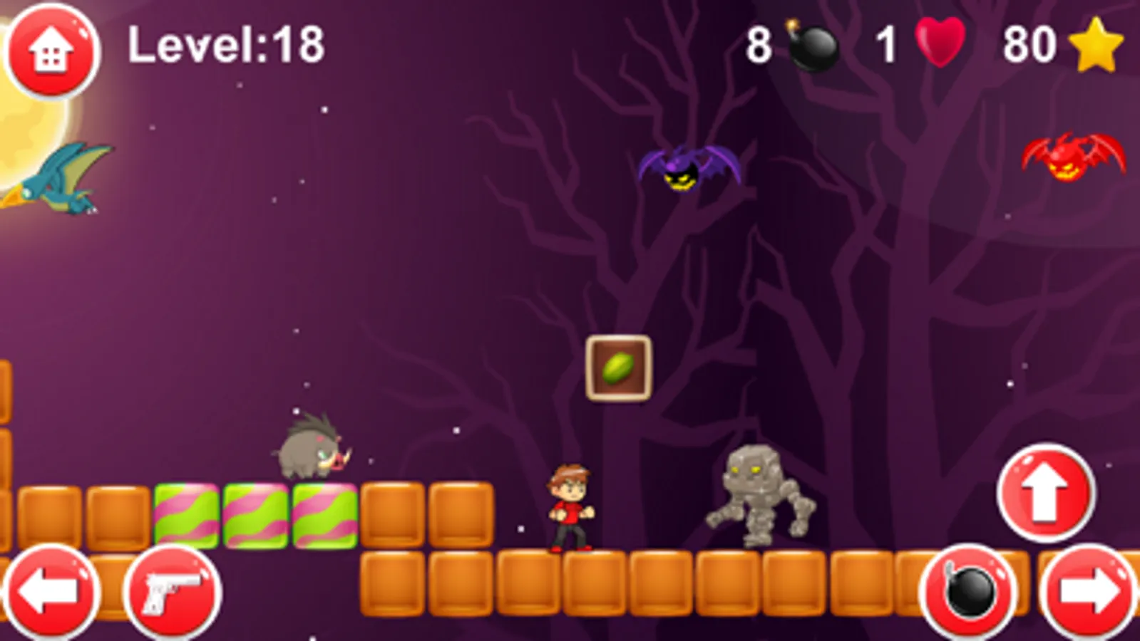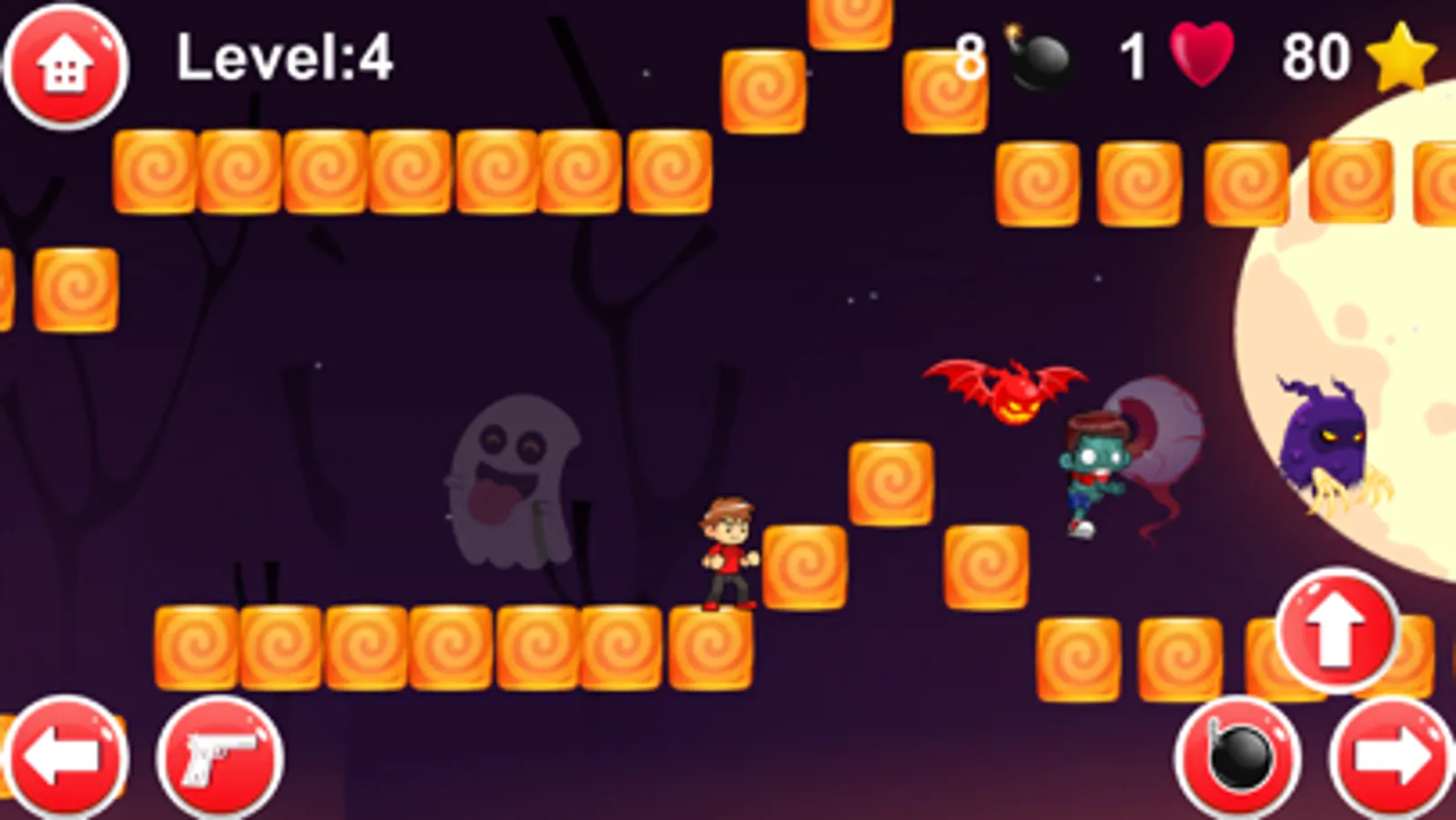 A zombie fire and bomb killer game. Your mission is just go home through a road with many awaiting Zombie. Kill them all or just avoid them to successfully got home safe. A kind of jump and run game but with many more interesting features. You can fire with unlimitted bullet. You can get bomb item to throw to the zombies or enemies along your way. There are walking and flying Zombie and creatures that you need to confront with. Try your best and pass all 55 levels.