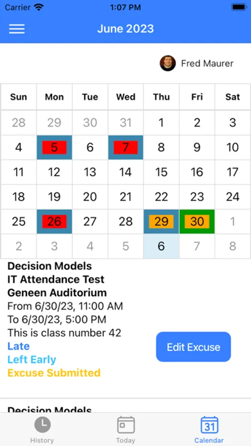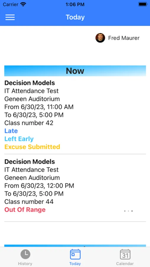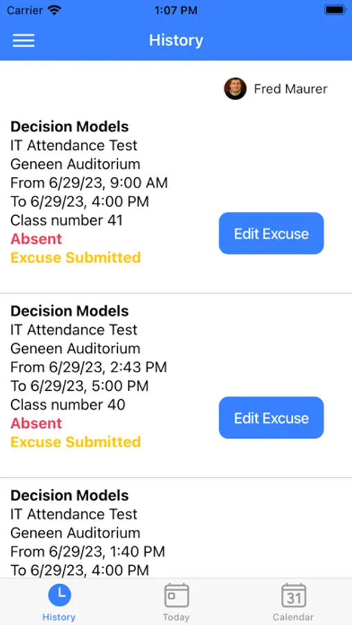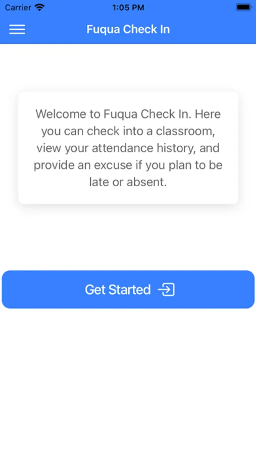 This application will assist The Fuqua School of Business faculty in taking attendance. It uses beacons located in classrooms. A student's phone will connect to a beacon in range using bluetooth. Once in range, a student can check into a classroom. There is also a history page to track past check-ins and provide excuses if marked late or absent. There is also a calendar that will allow you to view future classes and provide excuses for being absent before the class begins. This application will assist The Fuqua School of Business faculty in taking attendance. It uses beacons located in classrooms. A students phone will connect to the beacon in range using bluetooth. Once in range, a student can check-in to a classroom. There is also a history page to track past check-ins and provide excuses if marked late or absent. There is also a calendar that will allow you to view future classes and provide excuses for being absent before the class begins.