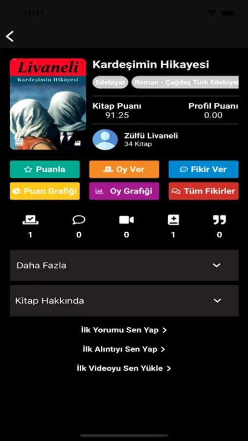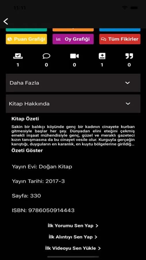 dair bilgilere ulaşabilir daha önce o kitabı okuyan kullanıcıların verdikleri puanı, yaptıkları yorumları, çektikleri videoları verdikleri tavsiyeyi ve öneriyi