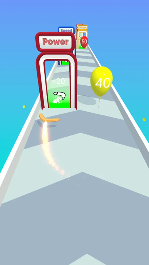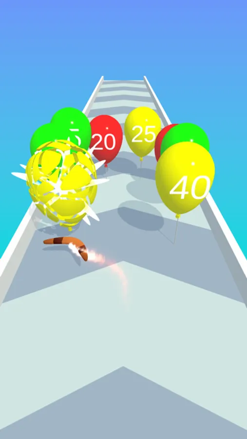 Boomerang Run puts the power of the boomerang in your hands. Send it forward to pop balloons, catch boosts, and break through doors... beware of what it might hit as it turns back around.