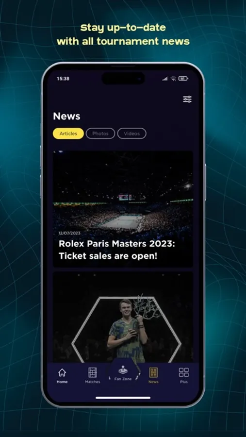 Find the newsfeed featuring articles, videos and photos. Personalise your experience and feed by activating the notifications and adding your favourite players.