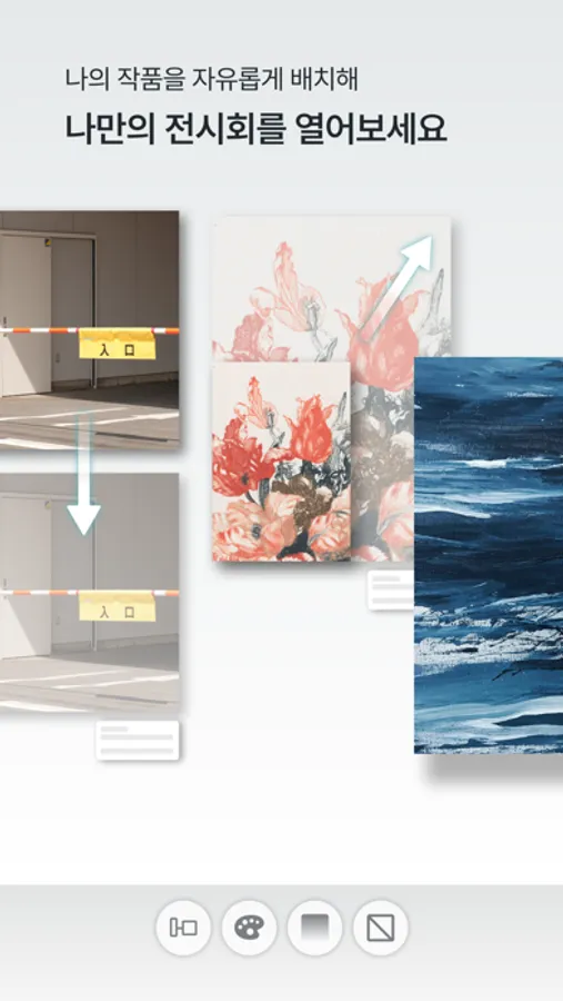 오브레는, ‘플로어’라는 전시공간을 제공해요. 플로어 별로 테마를 지정하고, 테마에 따라 작가님의 작품을 원하는 위치에 원하는 크기로 디스플레이해보세요!