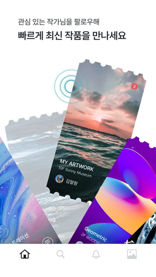 홈화면에서 내가 팔로잉 하고 있는 작가의 플로어가 생성되거나 업데이트 되었을 때, 쉽고 간편하게 확인할 수 있어요.