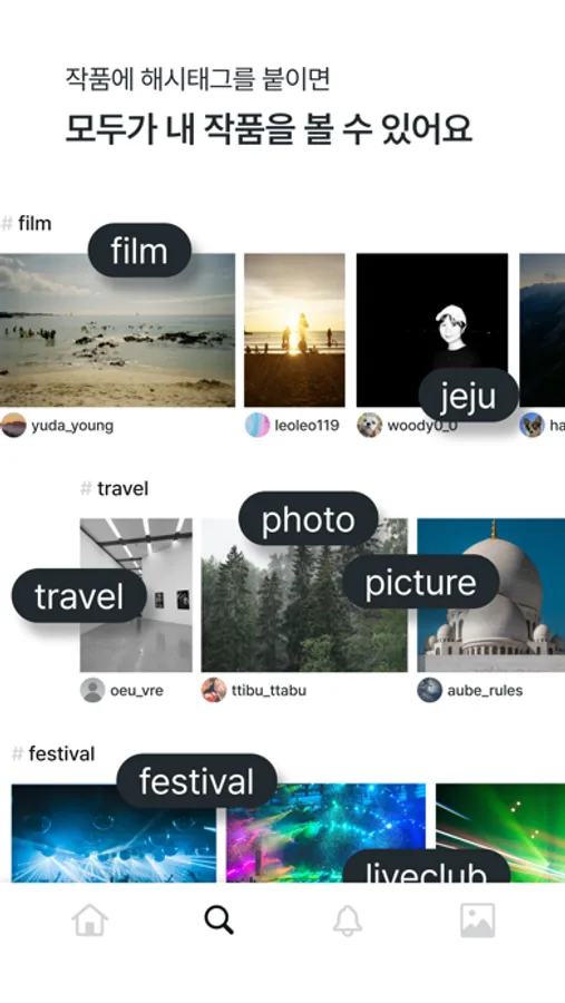 탐색탭에서는 최근 인기있는 해시태그를 보여줘요!