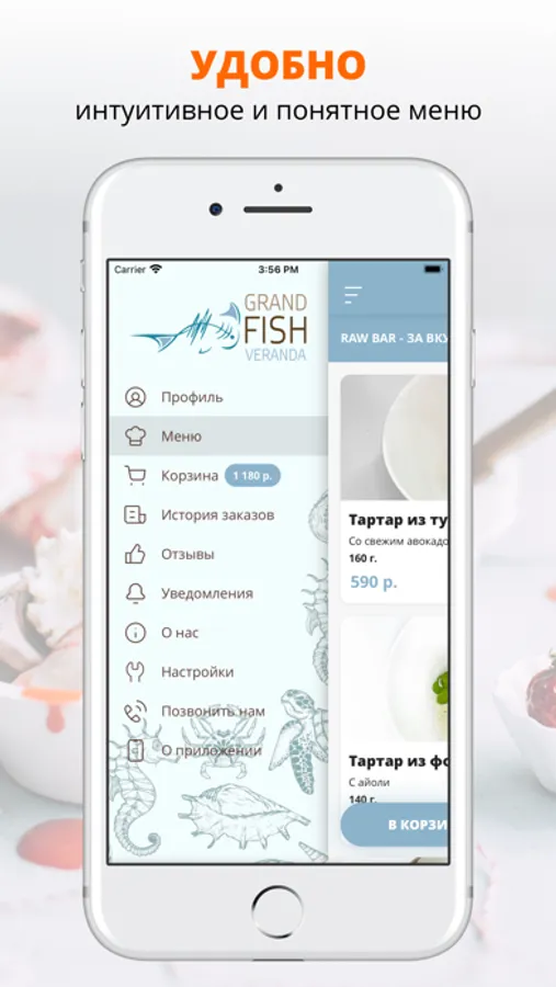 Воспользуйтесь удобным приложением для заказа еды «Grand Fish Veranda | Сочи».