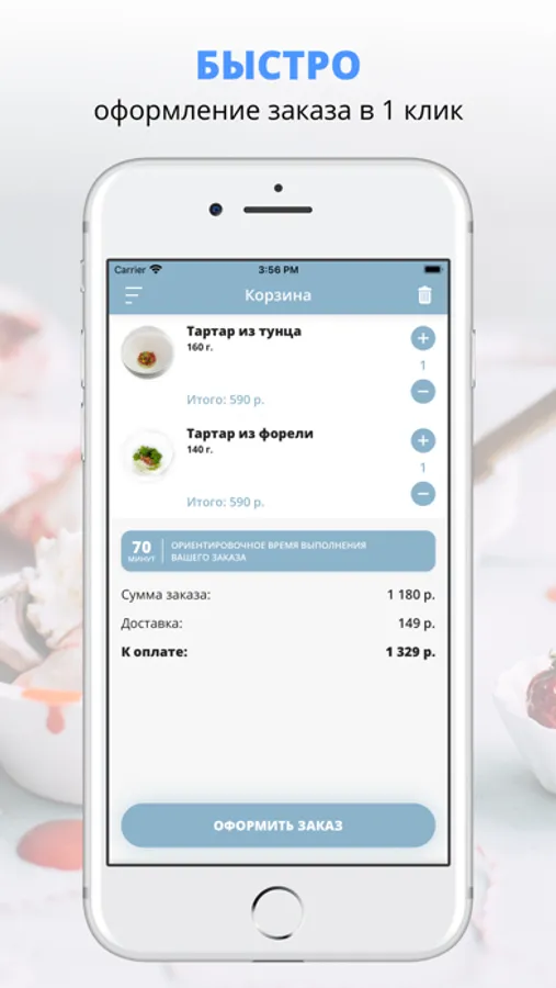 Скачивайте наше приложение, оформляйте заказ и наслаждайтесь любимой едой, где бы Вы ни были! Приятного аппетита!