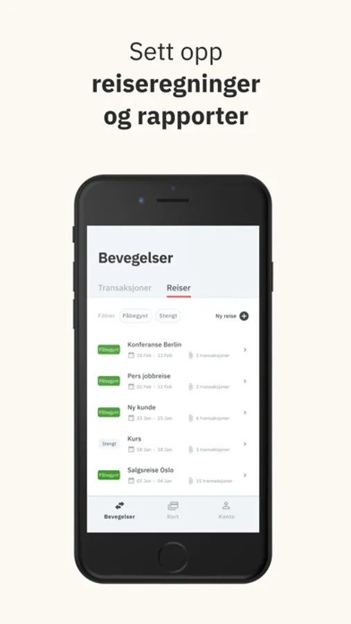 Med Bedriftskort-appen får du full oversikt over alle transaksjoner på ditt kredittkort, og kan enkelt laste opp kvitteringer for kjøpene du gjør. Du har også mulighet til å sperre og låse opp kort gjennom appen, i tillegg til å enkelt kommunisere direkte med bedriftens administrator.