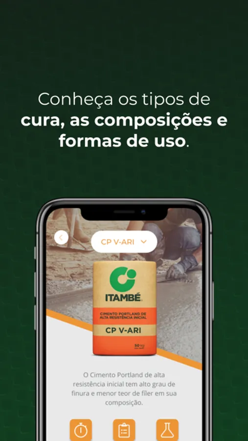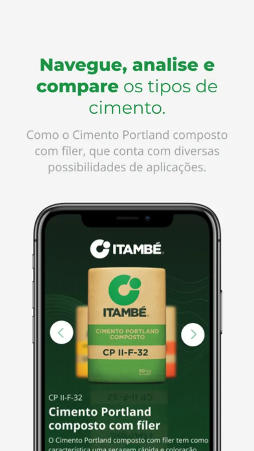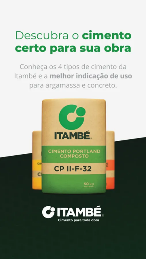 O aplicativo Cimento Certo está de cara nova! Na versão de 2023, você conta com ainda mais funções de aplicações e desempenho para conhecer em detalhes todos os tipos de cimento produzidos pela Itambé. Baixe e analise a aplicabilidade dos produtos para diferentes necessidades, descubra qual o tipo de cimento mais recomendado para a sua obra e ainda verifique o desempenho nos ensaios feitos pela Itambé em comparação às especificações da ABNT.