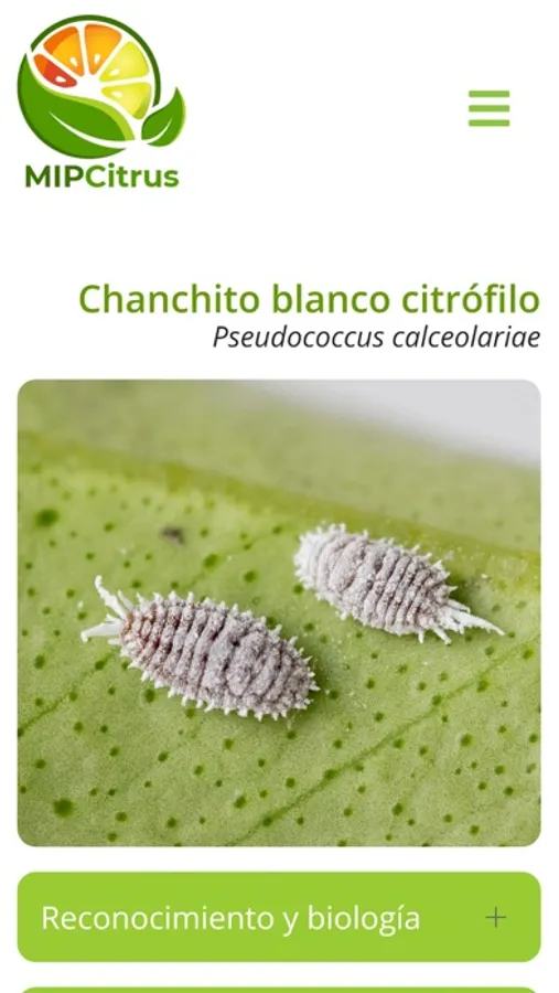 MIPCitrus fue desarrollada para consolidar información de reconocimiento, biología, daño y manejo de las principales plagas en cítricos.