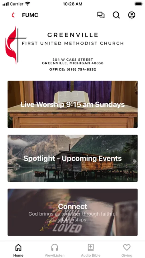 This app will help you stay connected with the day-to-day life of our church. With this app you can: watch or listen to past messages; stay up to date with push notifications; share your favorite messages via Twitter, Facebook, or email; and download messages for offline listening.