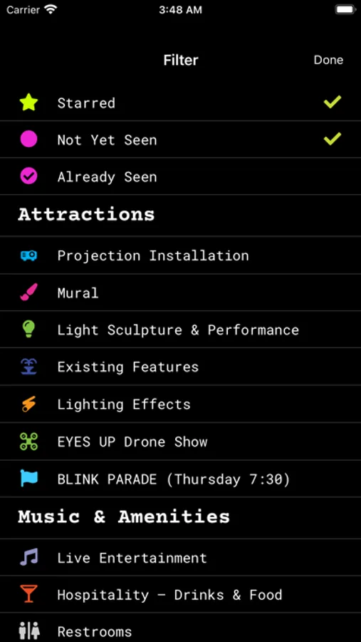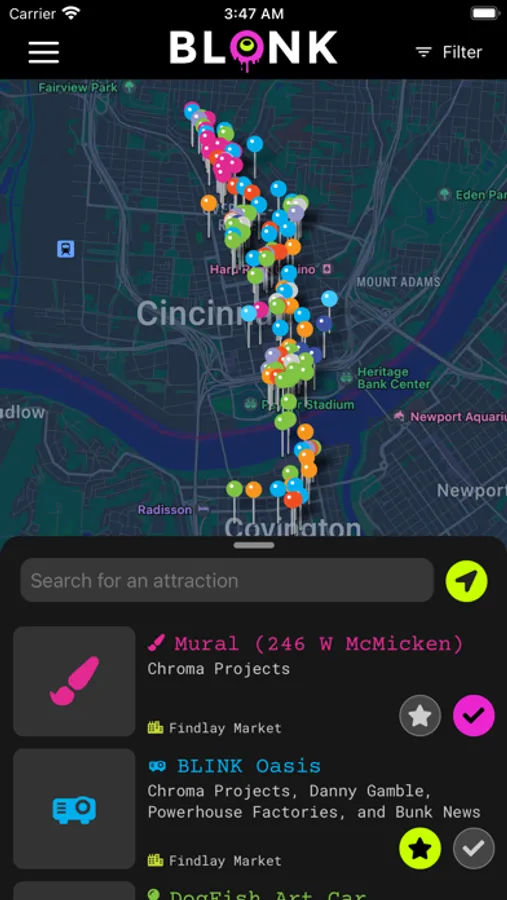 • Filter the map by type of attraction, whether you have seen it yet, and more!