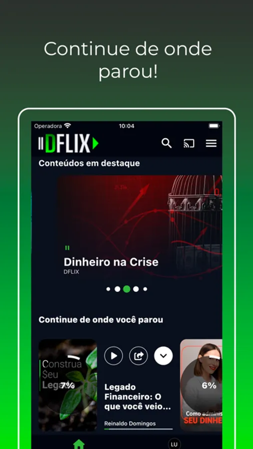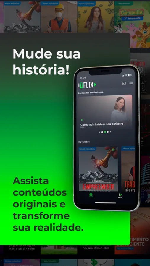 DFLIX é o app que vai mudar sua vida. Aprenda com experts a Metodologia DSOP (Diagnosticar, Sonhar, Orçar e Poupar) a qualquer hora, de qualquer lugar. Descubra seu perfil comportamental financeiro e mude seu comportamento para alcançar seus sonhos.