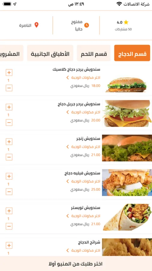 يحتوى التطبيق على طريقة عرض مميزة لتسهل عليك الأختيار من قوائم الطعام المعروضة على التطبيق بشكل واضح ومنظم، لطلب طعامك دون عناء.
