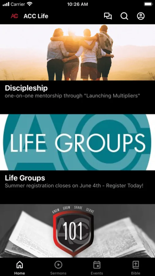 This app will help you stay connected with the day-to-day life of ACC. With this app you can: watch or listen to past messages; learn more about one-on-one discipleship, join life groups, stay up to date with push notifications; share your favorite messages via Twitter, Facebook, or email; and download messages for offline listening.