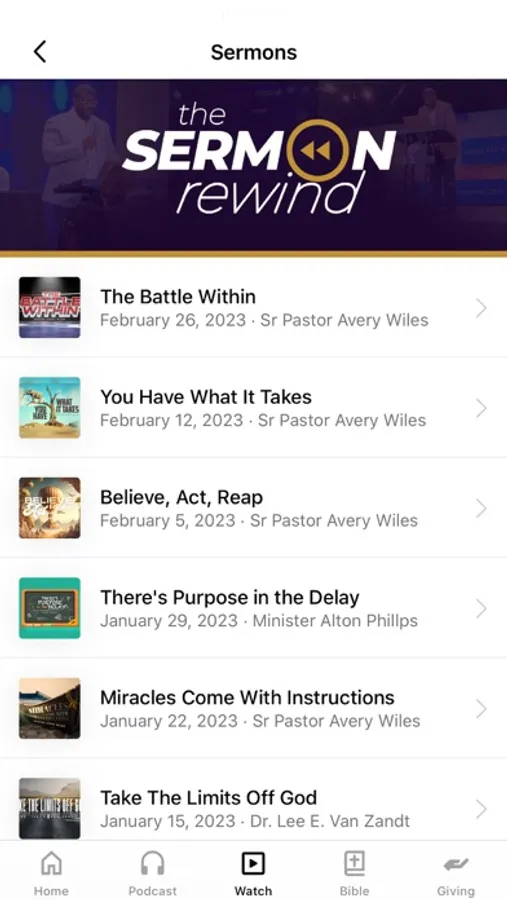 This app will help you stay connected with the day-to-day life of our church. With this app you can: watch or listen to past messages; stay up to date with push notifications; share your favorite messages via Twitter, Facebook, or email; and download messages for offline listening.