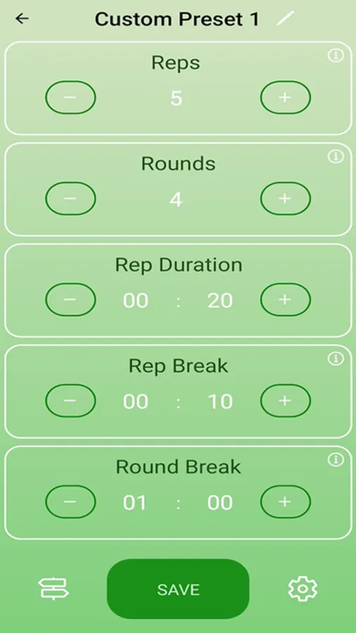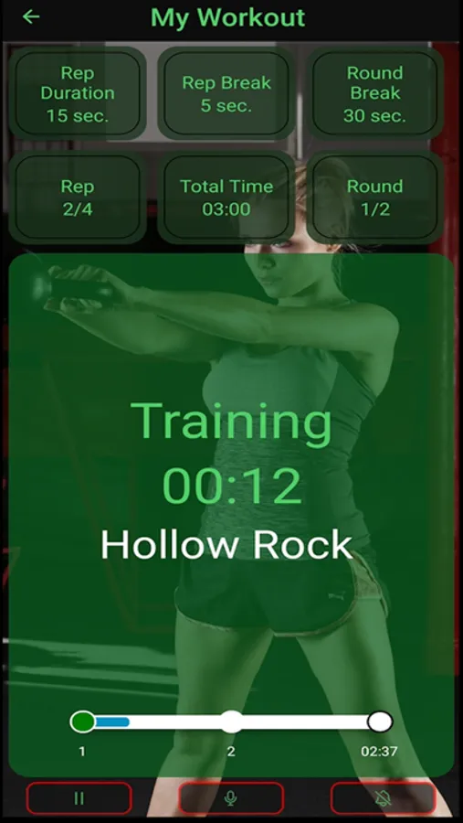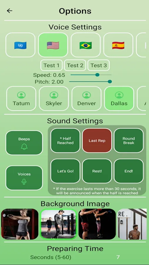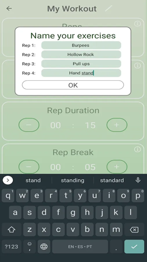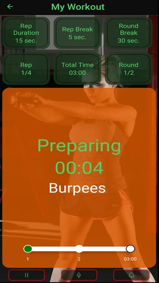 Create personalized workouts indicating the number and duration of the exercises to be performed, their names to listen to them during the workout, the number of rounds and the duration of the breaks.