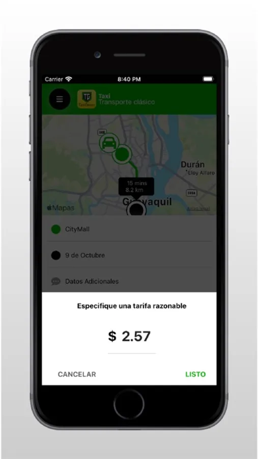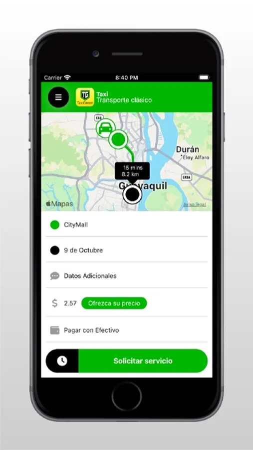 TaxiGreen es un servicio de taxi en Esmeraldas, que te entrega viajes económicos, cómodos y seguros. Pide un taxi desde la app de TaxiGreen en tu celular.