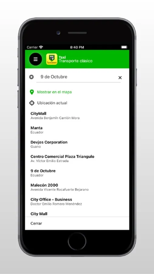 Mercado, aeropuerto o dentro de la ciudad, llega de forma fácil. Abre la appde TaxiGreen, ingresa tu destino y tu precio el chofer más cercano te llevará donde necesites.
