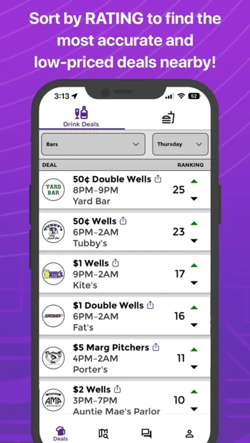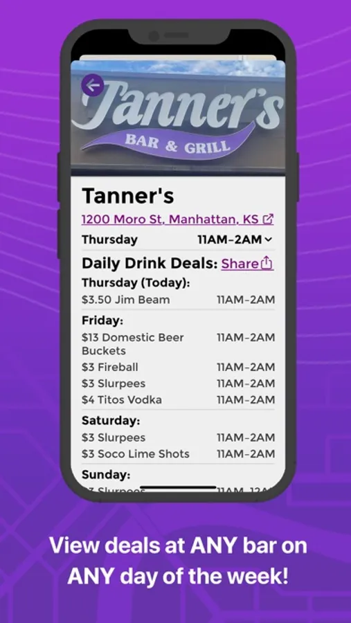 Find the best bar deals. Upvote bar deals. Chat with friends. Exclusively in the Manhattan Bar Deals app in Manhattan, KS. Click on bars on the map to see deals. Chat with others on the app with an anonymous emoji profile. Manhattan Bar Deals is the best way to find the cheapest bar deals in Manhattan, KS!