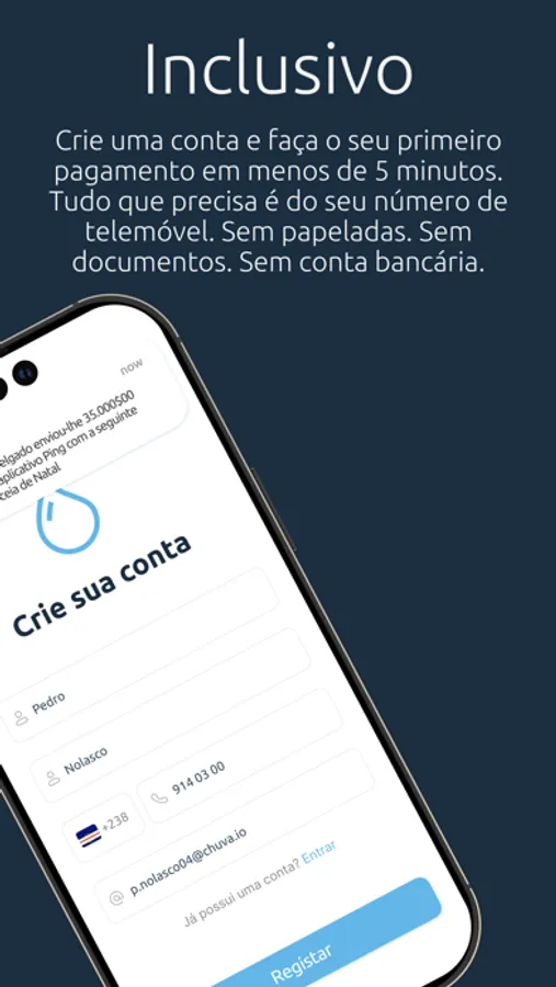 Ping é uma plataforma de transferência de dinheiro que vem para revolucionar todas as transações de dinheiro dentro de e para Cabo Verde, facilitando transferências peer to peer e business to business e também pagamento de serviços peer to business.