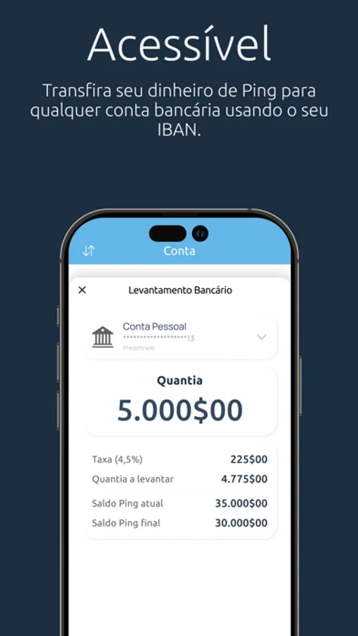 - Transfira dinheiro da sua conta Ping para uma conta bancária.