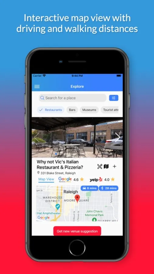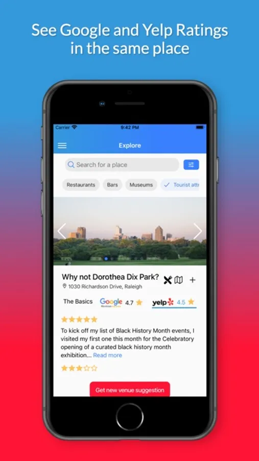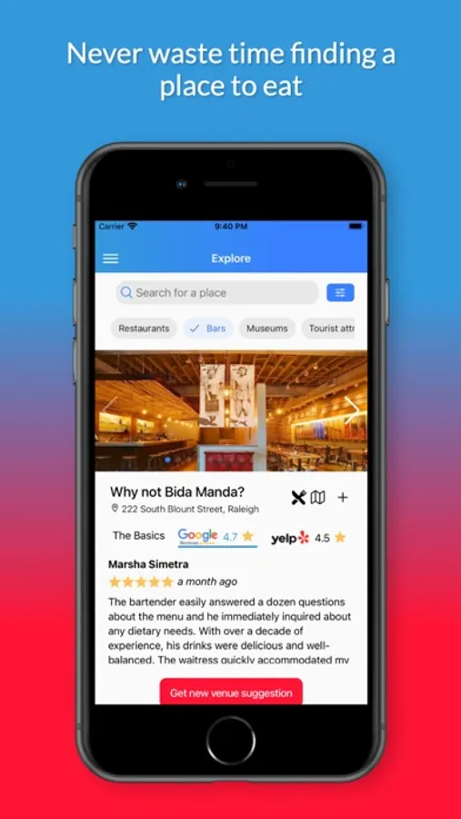 Google and Yelp ratings in the same place, with new suggestions just a tap away!