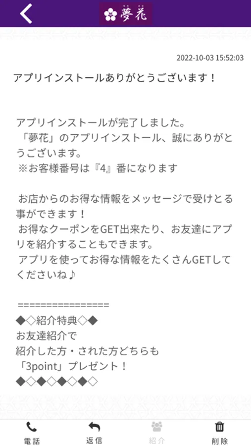 夢花のアプリをSNSを通じてお友達に紹介する事ができます。