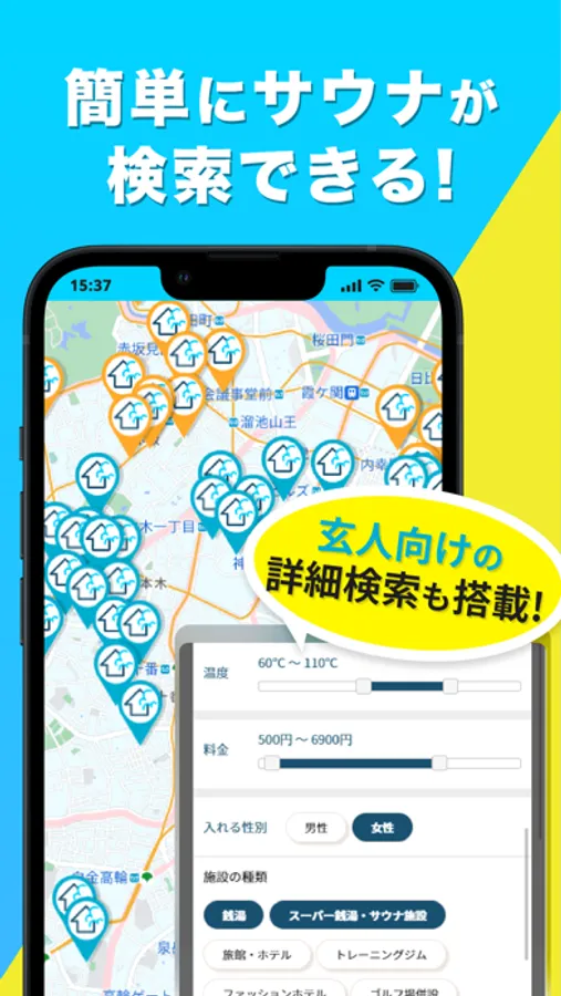 地図上で気になるサウナ情報はワンタップですぐに表示出来るので、初めての土地での新しいサウナとの出会いがあるかも!