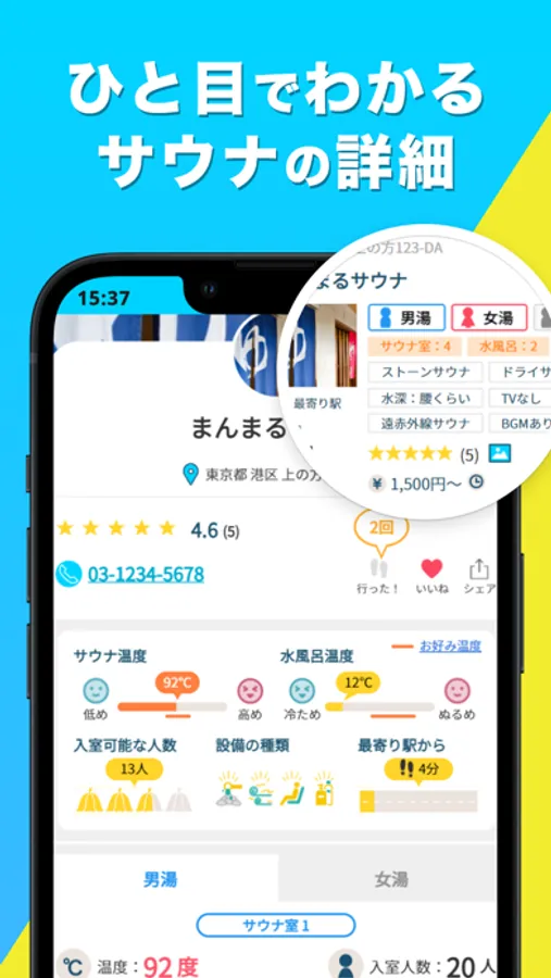 友達に好きなサウナをアピールしたり、オススメしたいサウナの紹介など、サ活報告に活用できます。