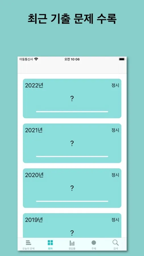 기출 문제 하나하나를 모바일 앱의 화면에 맞게 최적화했습니다.