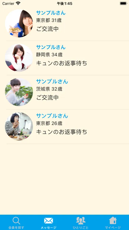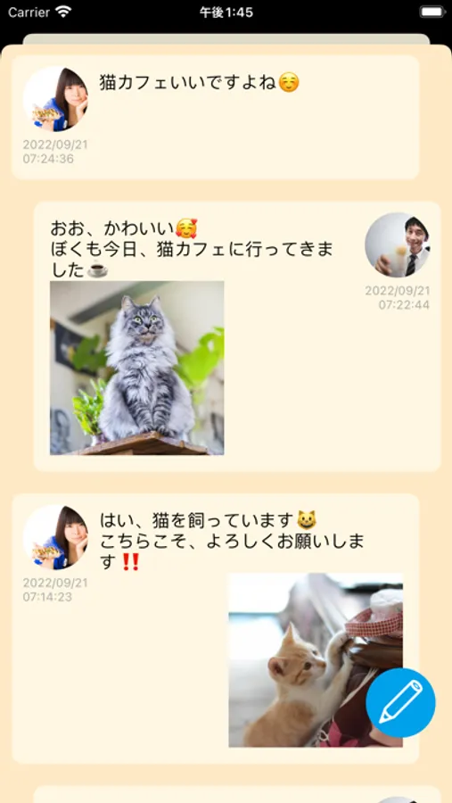 写真やイラストをアップロードしてつぶやけるコミュニティ機能。アニメやゲームなどの話題はもちろん、婚活のお悩みをシェアして日々のモチベーションを保つことができます。