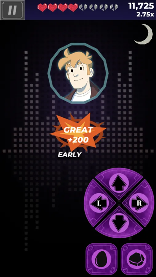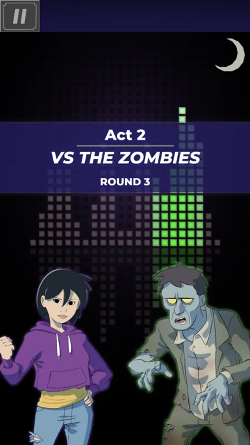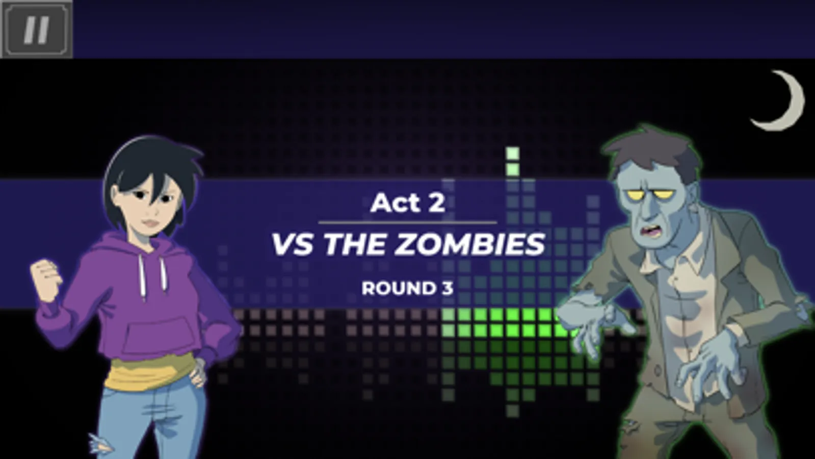 Start off with the Narrator's tale about a boy who starts hearing a mysterious warning about the moon. Then, play rhythm gameplay to guide new heroes Zoe and Dennis against a zombie invasion. Can you help them save the day?