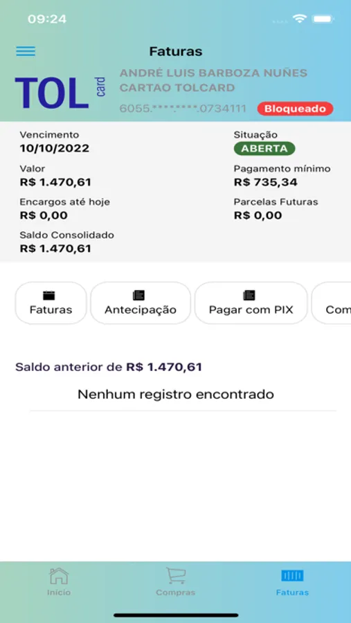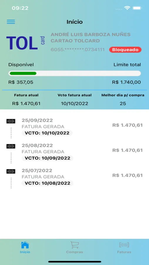 Com o app Tolcard é possível consultar limites disponíveis, compras, fatura e acessar o código de barras para pagamento, entre outras funcionalidades.