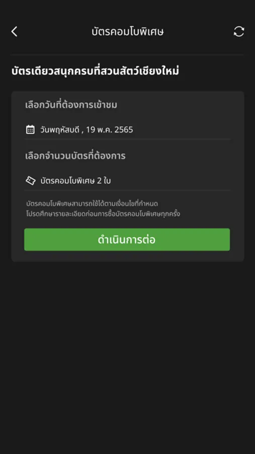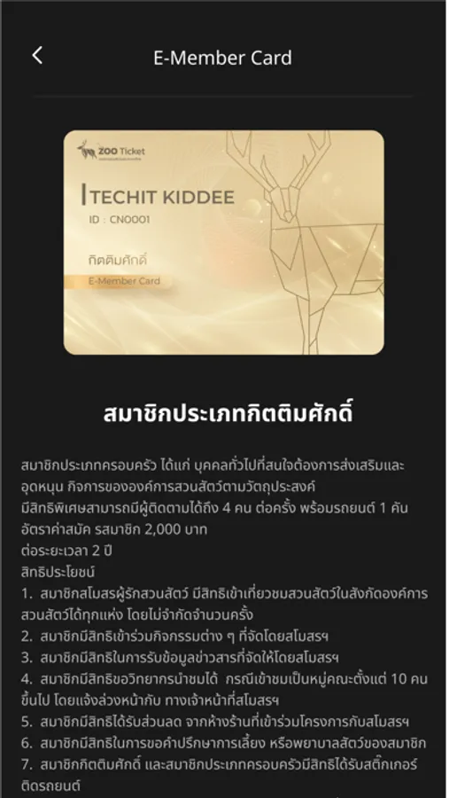 แพลตฟอร์มจำหน่ายบัตรอิเล็กทรอนิกส์ ที่สามารถจำหน่ายบัตรได้หลากหลายประเภท เช่น บัตรเข้าชมสวนสัตว์ บัตรสำหรับทัศนศึกษา บัตรอบรม บัตรกิจกรรมภายในสวนสัตว์ รวมไปถึงแพ็กเกจคอมโบเซ็ต ให้ผู้ใช้งานสามารถเลือกซื้อบัตรผ่านแอปพลิเคชัน และชำระเงินผ่านช่องทางออนไลน์ โดยระบบจะออกบัตรอิเล็กทรอนิกส์ที่มี QR Code ให้ผู้ใช้งานนำไปใช้ และมีร้านค้าออนไลน์จำหน่ายสินค้าของสวนสัตว์ ให้ผู้ใช้งานเลือกซื้อได้สะดวก