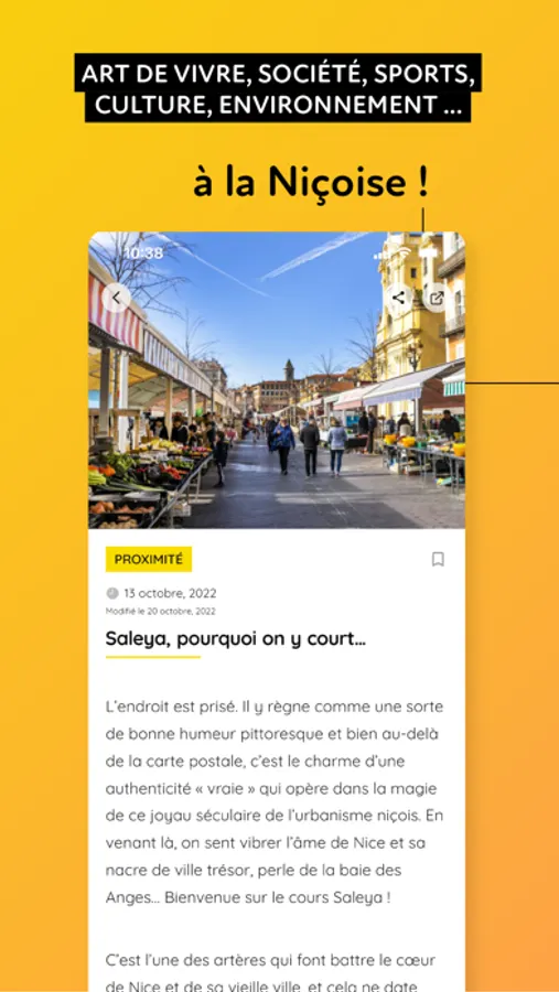 Une application pour vous informer et connaitre l’actu de Nice en continu : société, sports, environnement, culture et art de vivre à la Niçoise.