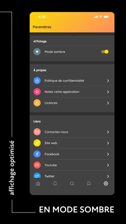 - Profitez d’un affichage optimisé avec le mode sombre.
