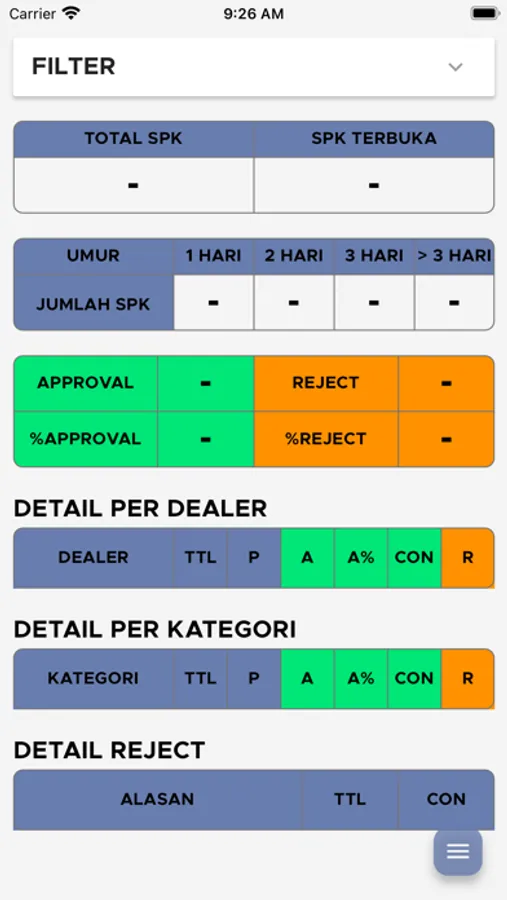 Menyajikan informasi yang mudah dan cepat dalam melihat total SPK di semua area dengan mengelompokkan data berdasarkan status SPK, melihat detail data konsumen serta status persetujuan SPK.