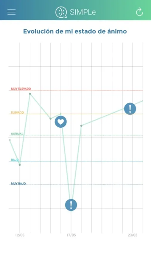 La aplicación SIMPLe ofrece la posibilidad de realizar un seguimiento del estado de ánimo en pacientes con trastorno bipolar recibiendo mensajes psicoeducativos adaptados a cada estado diariamente. Además de forma simultánea permite programar horarios de toma de medicación, síntomas prodrómicos de recaída, registrar eventos estresantes entre otras muchas funciones. Al ir utilizando estas funciones y leer los mensajes psicoeducativos, la aplicación va recompensando la motivación con medallas y trofeos.