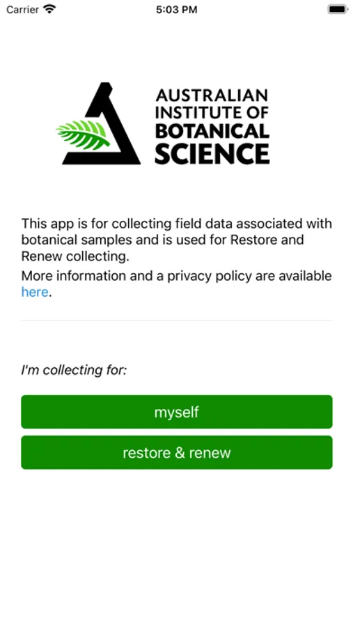On app launch, unless you've been given a login by the Restore & Renew team, you'll want to login using the myself button.