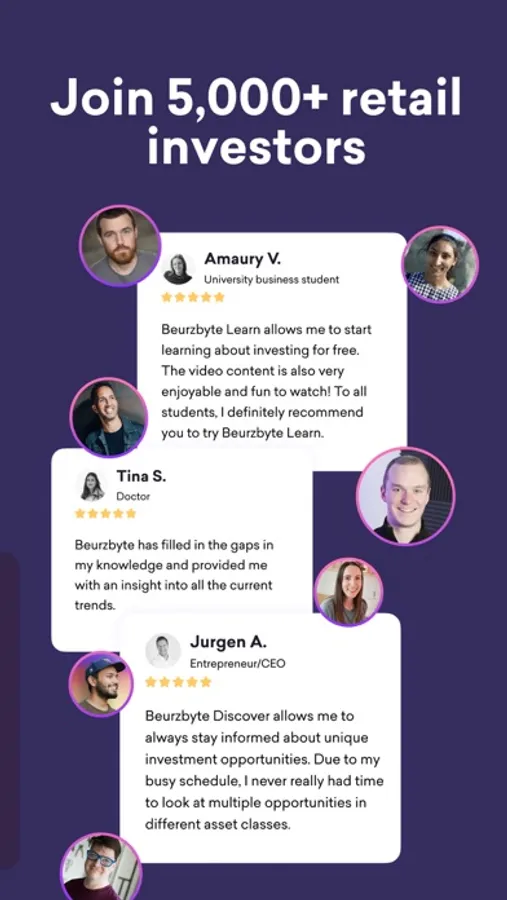 Discover the best stocks, crypto, ETFs and more by streaming ground-breaking research. At Beurzbyte, we recognise the importance of making informed decisions when it comes to growing your portfolio. We're your dedicated partner, offering a comprehensive platform that combines world-class research and education. It’s time to grow your portfolio and make your money work for you.