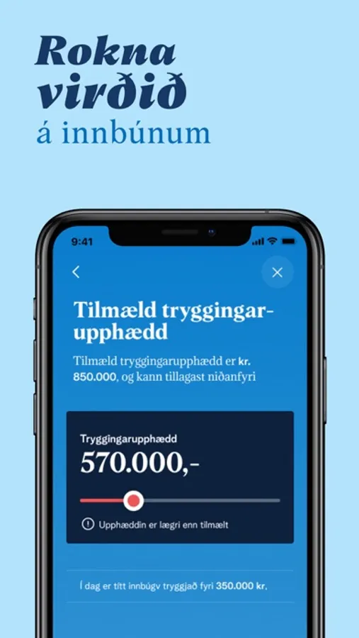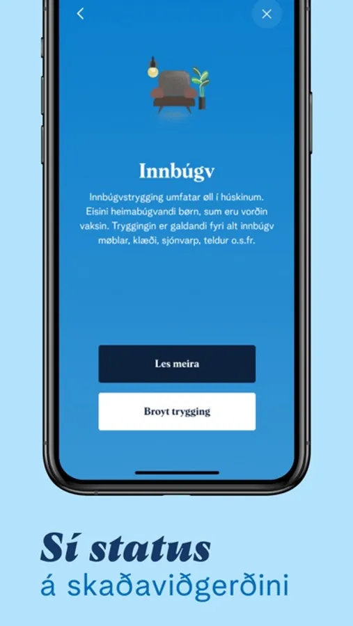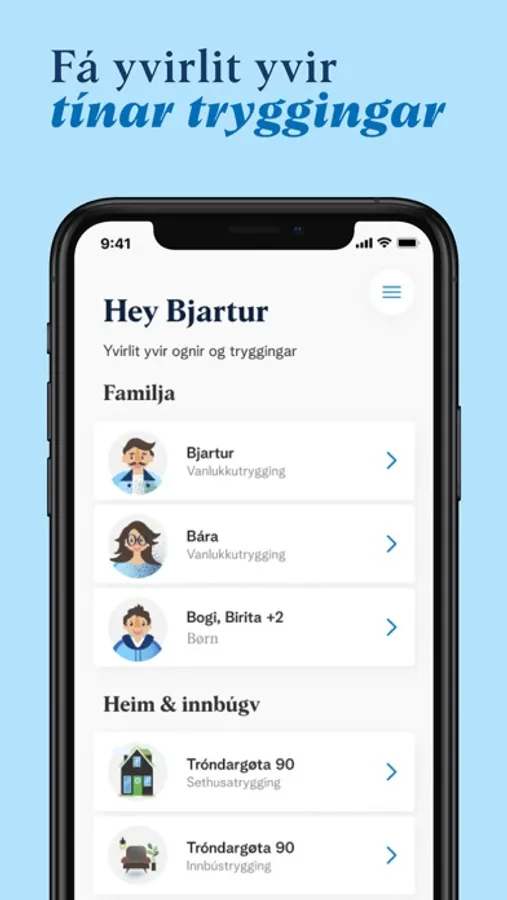 Við appini “Mín Trygging” fært tú tryggingina í lumman.