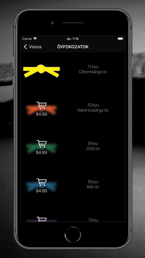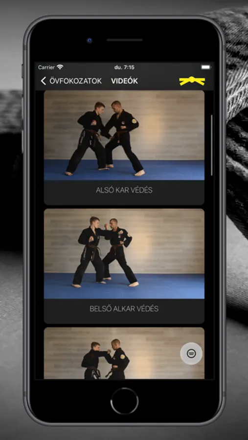 - az övfokozatokhoz tartozó fogásokat bemutató videók,