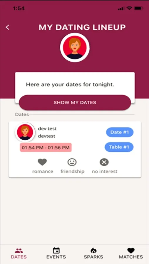 Step 4: As soon as the event starts your dates will be available on the app to view. We match you based on your preferences to ensure a great fit!