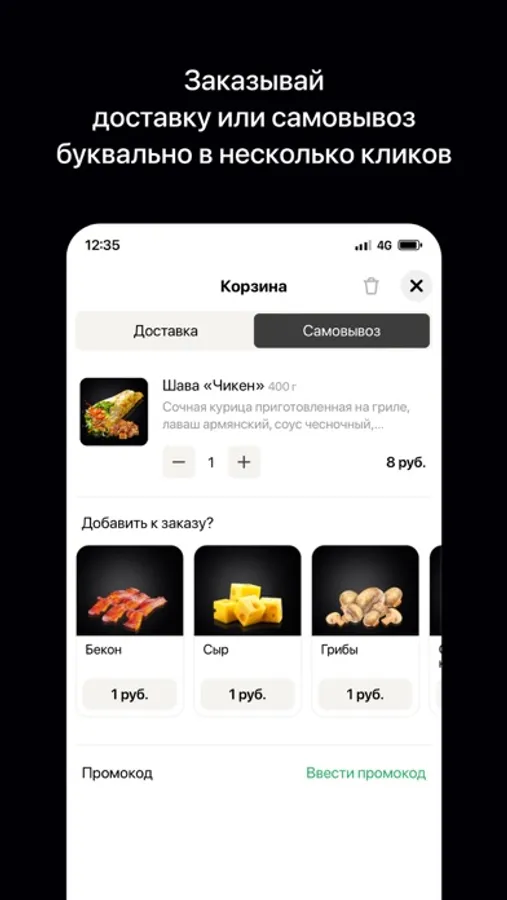 — Быстрый заказ с мгновенным подтверждением через приложение.
