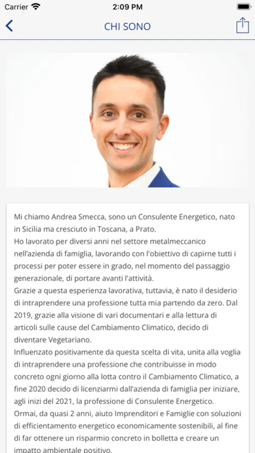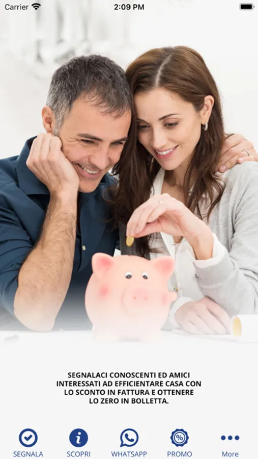 Può una semplice segnalazione nel campo dell’efficientamento energetico farti guadagnare fino a 1000€? Grazie alla mia applicazione gratuita potrai guadagnare semplicemente segnalandomi: - AZIENDE che vogliono installare il Fotovoltaico sul tetto della propria azienda, con la sicurezza di affidarsi ad un’azienda Globale e il vantaggio economico di non avere ESPOSIZIONE FINANZIARIA verso banche o finanziarie - PARENTI, AMICI & CONOSCENTI che vogliono avere una consulenza gratuita su come efficientare casa con lo sconto in fattura e ottenere lo ZERO IN BOLLETTA Tramite la mia APP potrai tenere traccia delle segnalazioni, verrai aggiornato sul loro andamento fino a quando riceverai la notifica che puoi ritirare il tuo compenso. Mi presento sono Andrea Smecca, sono un Consulente Energetico e mi distinguo per offrire, ad Imprenditori e Famiglie, soluzioni di efficientamento e risparmio energetico senza investimenti iniziali, al fine di ottenere, fin dal primo mese, un risparmio economico concreto. L'App è completamente gratuita e potrai condividerla con altre persone se la reputi valida. Sono veramente entusiasta di vederti nella mia rete di segnalatori per lavorare e guadagnare insieme.