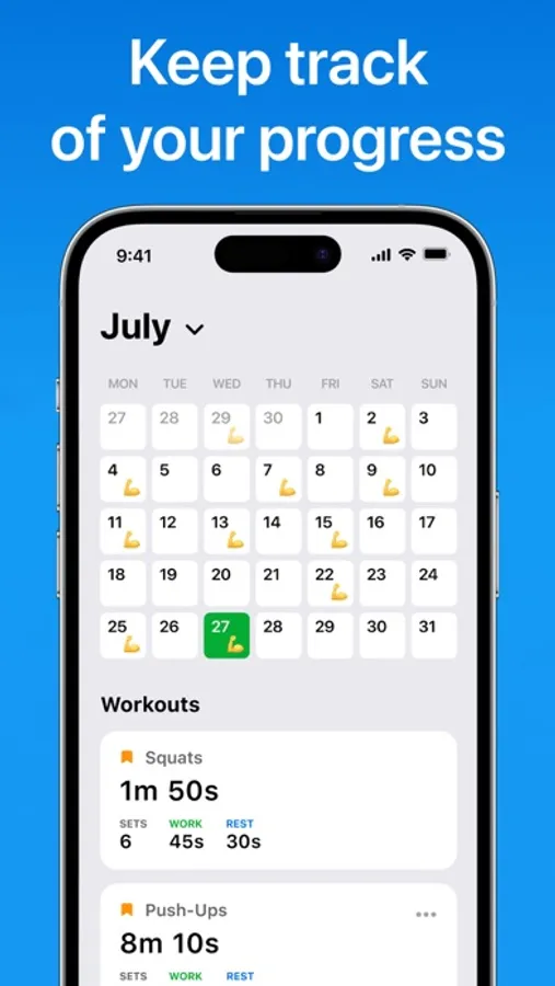 Track your workouts with a Calendar. Plan and track events, and get notified when you have a training scheduled. With this feature, you will not miss a single workout and will keep track of your progress.