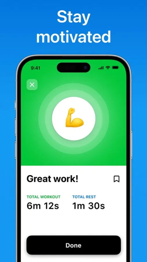 Each completed exercise motivates you to achieve higher goals. Enjoy your training and achieve your fitness goals with the interval timer.