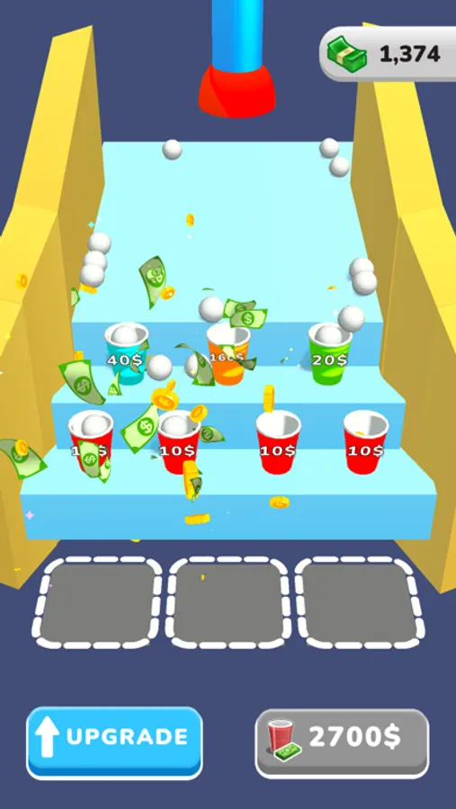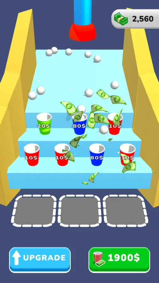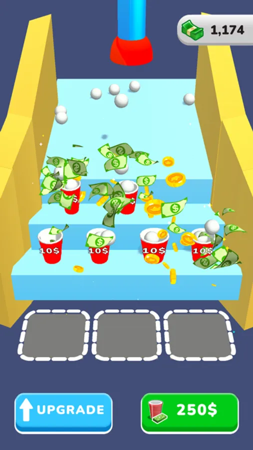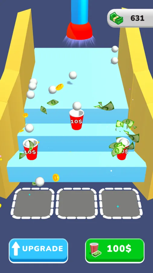 To earn much more money, increase the ball drop speed, add more balls and extend your stairs.