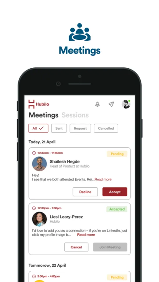2. Set up meetings with potential attendees (investors, mentors, industry CxOs) by using the chat feature.